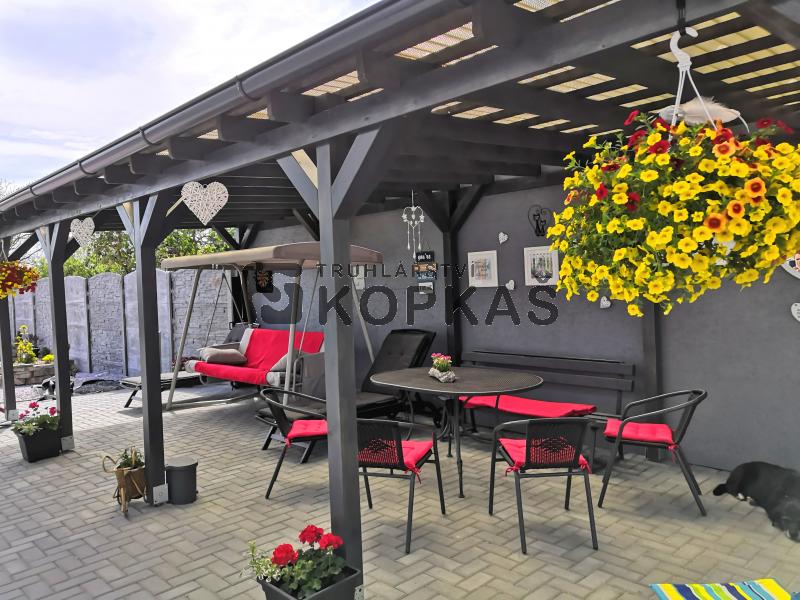 - Krovy pergoly jsou vyrobeny z fošen 35 x 115 mm.