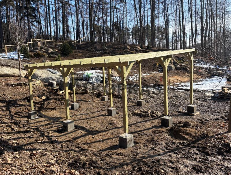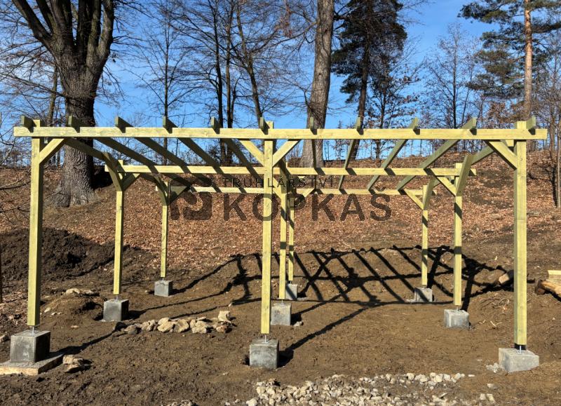 - Stojky pergoly jsou vyrobeny z masivních smrkových hranolů 95 x 95 mm.