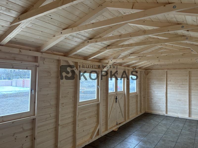 Zahradní domek 3 x 8 m vyroben z palubek o síle 1,9 cm a trámů 7,5 x 7,5 cm. Je tak vhodný pro všechny zahrady nejen na uskladnění nářadí a techniky. Samostatná rámová konstrukce u každého panelu zajištuje zvýšenou pevnost a odolnost domku. Veškeré dřevěné díly jsou hoblované. Balení obsahuje také asfaltové pásy na střechu.